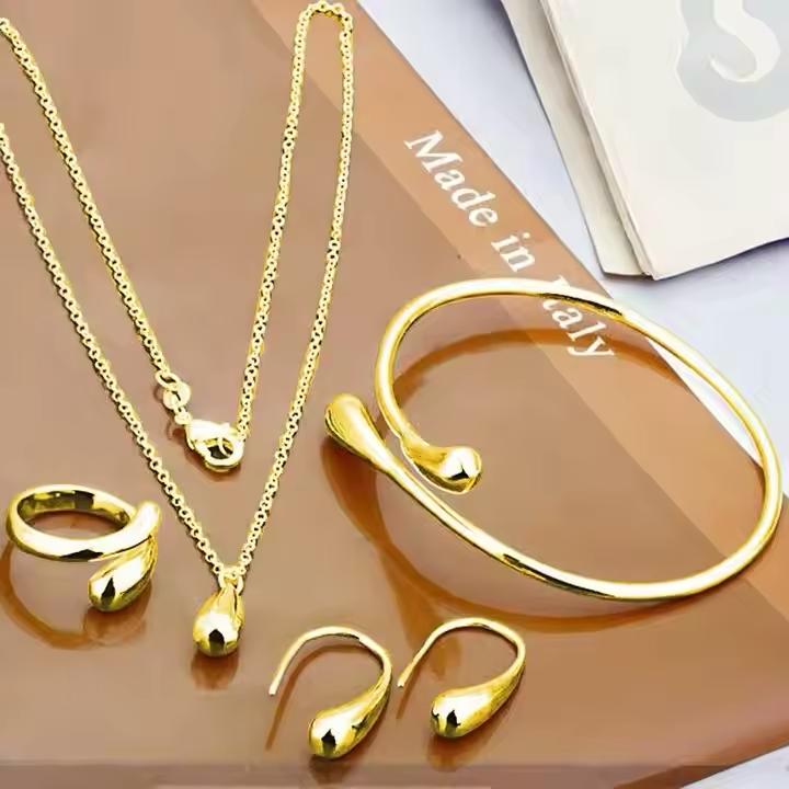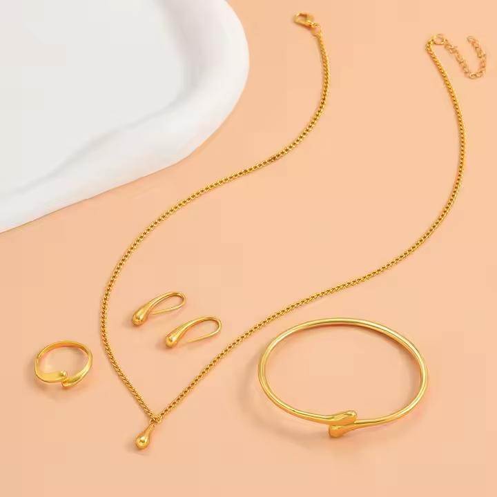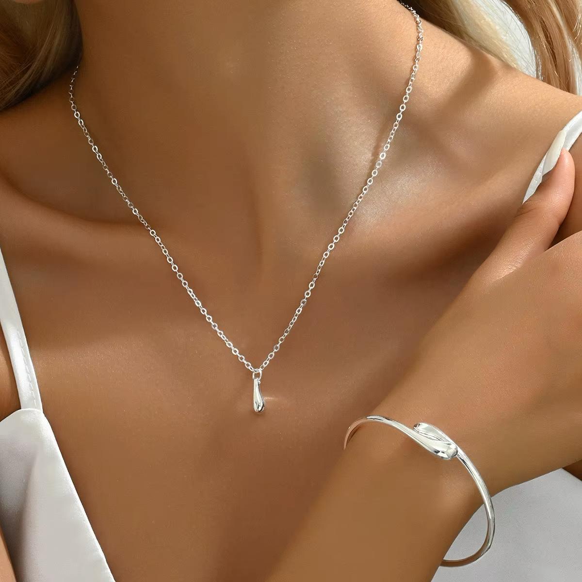 El Set “Ethereal Drops” destaca por su diseño minimalista en forma de lágrima, ideal para realzar cualquier look con un toque moderno y refinado. Disponible en dos acabados elegantes: dorado y plateado, para que elijas el que mejor se adapte a tu estilo.